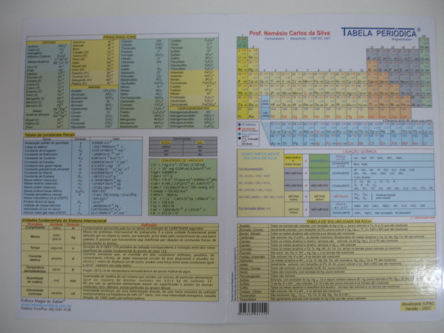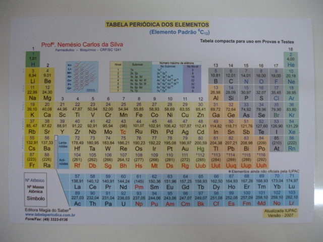 Atenção :  Papelarias   e  Livrarias , antes  de comprar  tabelas  e pagar um preço  fora do normal, entre   em   contato,  e   procure  conhecer   a  nossa  nova   Tabela  Periódica  versão  2007,  Prof.  Nemésio Carlos da Silva,  e  faça seu pedido com preço justo e qualidade total, com frete pago.